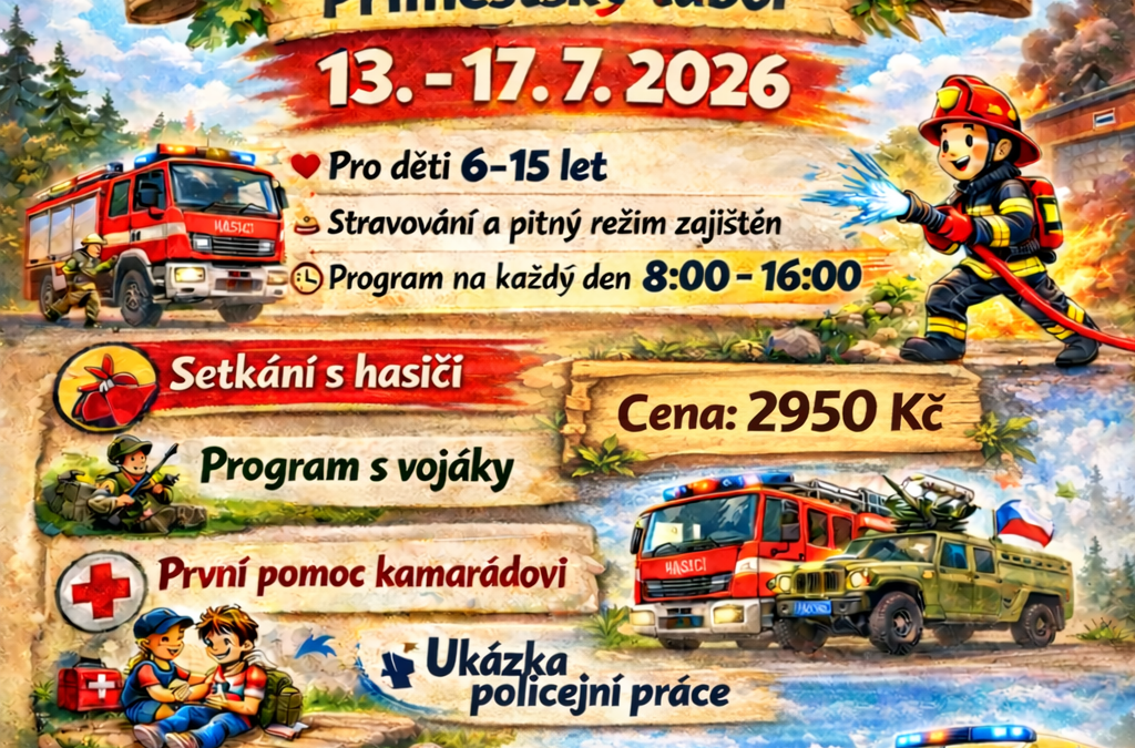 Staň se na týden skutečným hrdinou! Děti si vyzkouší práci hasičů, vojáků i záchranářů, naučí se základy první pomoci a zjistí, jak funguje policejní práce.